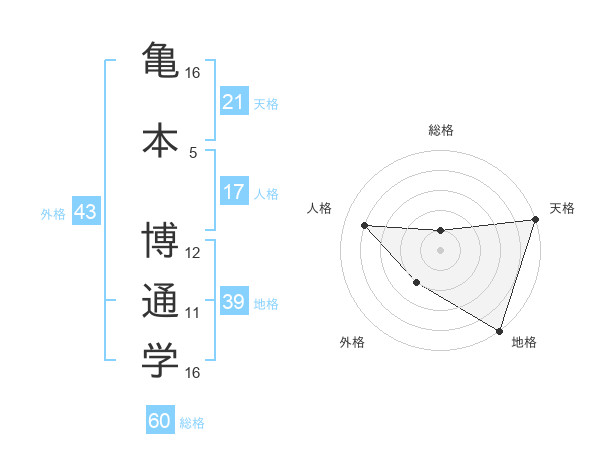 亀本 博通学さんを姓名の画数から五運を鑑定