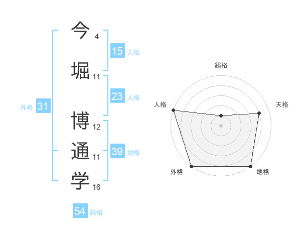 今堀 博通学さんの総格は54画の1点!
