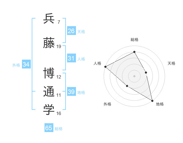 兵藤 博通学さんを姓名の画数から五運を鑑定