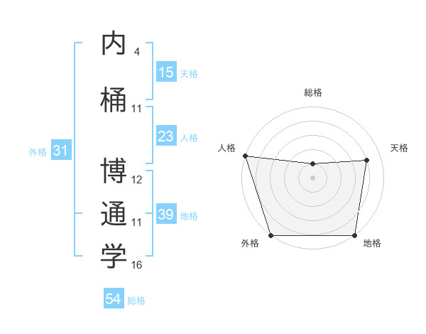 内桶 博通学さんを姓名の画数から五運を鑑定