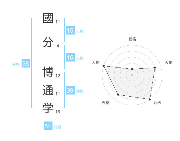 國分 博通学さんの総格は54画の1点!