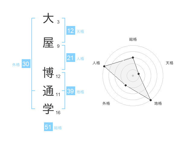 大屋 博通学さんの総格は51画の3点!
