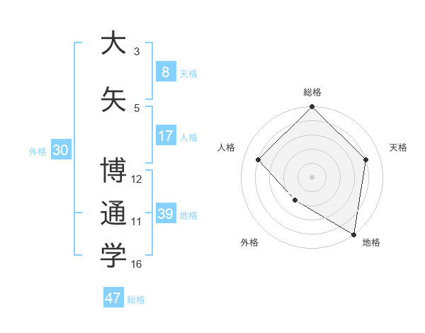 大矢 博通学さんを姓名の画数から五運を鑑定