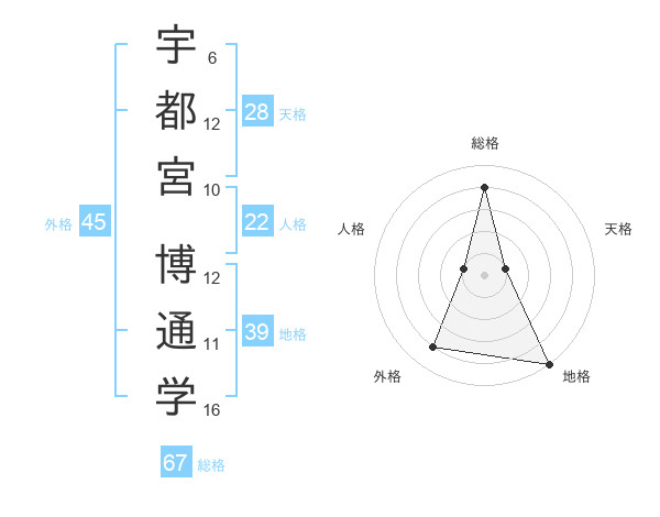 宇都宮 博通学さんを姓名の画数から五運を鑑定