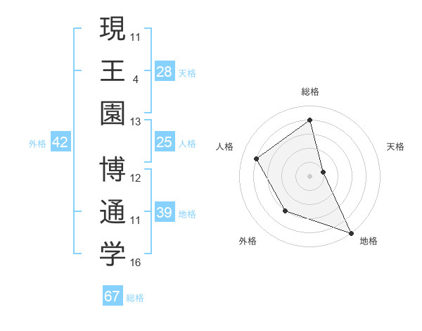 現王園 博通学さんを姓名の画数から五運を鑑定