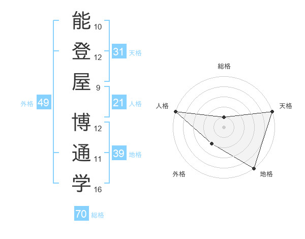 能登屋 博通学さんの地格は39画の5点!