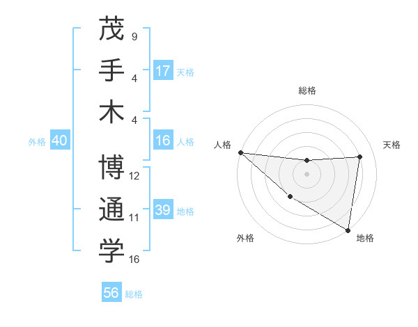 茂手木 博通学さんを姓名の画数から五運を鑑定