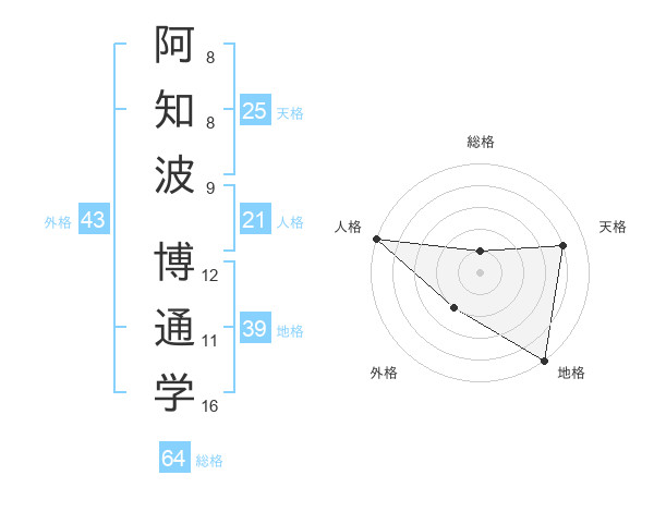 阿知波 博通学さんを姓名の画数から五運を鑑定