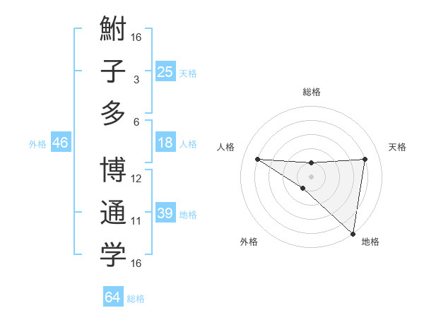 鮒子多 博通学さんを姓名の画数から五運を鑑定