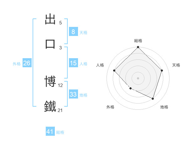 出口 博鐵さんを姓名の画数から五運を鑑定
