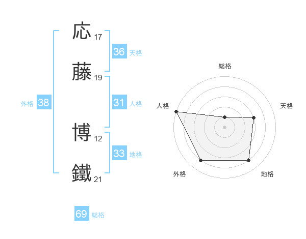 応藤 博鐵さんの総格は69画の1点!