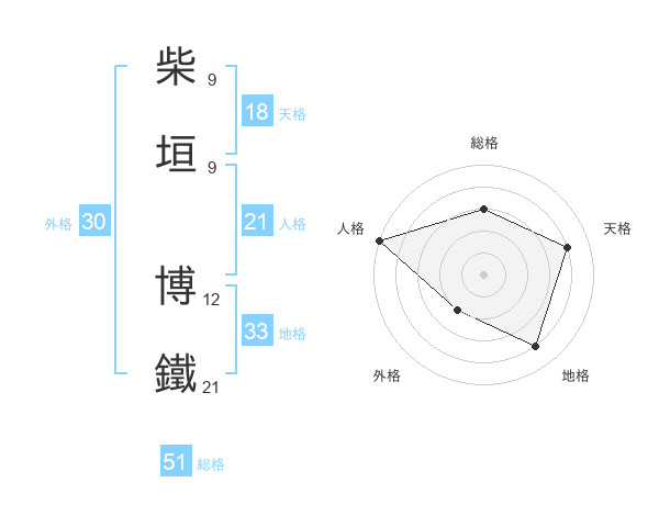 柴垣 博鐵さんを姓名の画数から五運を鑑定
