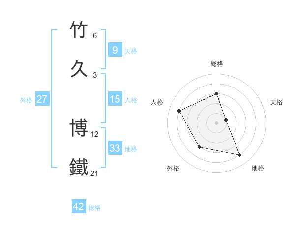 竹久 博鐵さんを姓名の画数から五運を鑑定