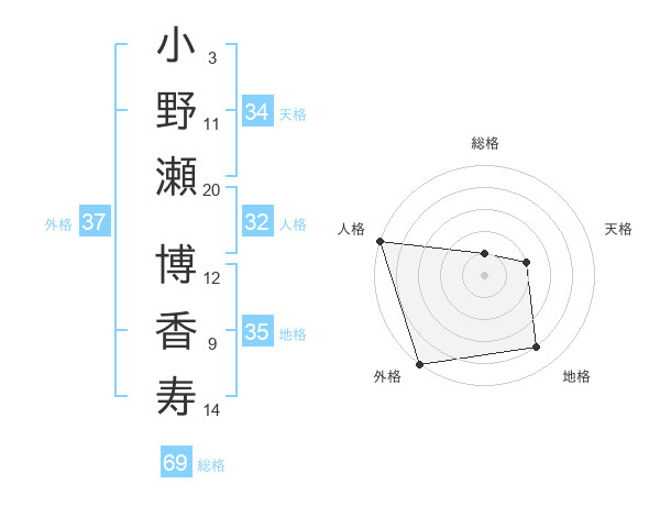 小野瀬 博香寿さんを姓名の画数から五運を鑑定