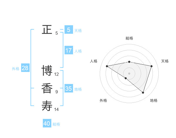 正 博香寿さんの天格は5画の4点!
