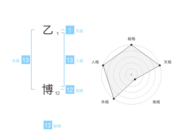 乙 博さんの外格は13画の5点!