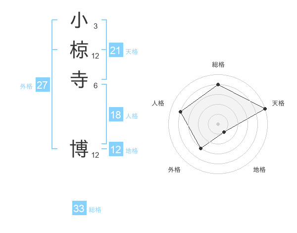 小椋寺 博さんの総格は33画の4点!