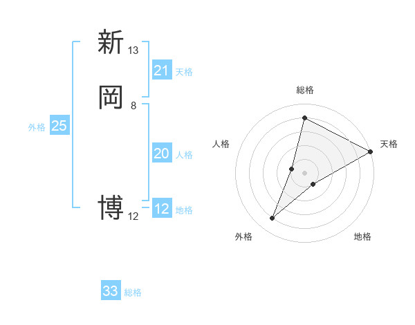 新岡 博さんの総格は33画の4点!