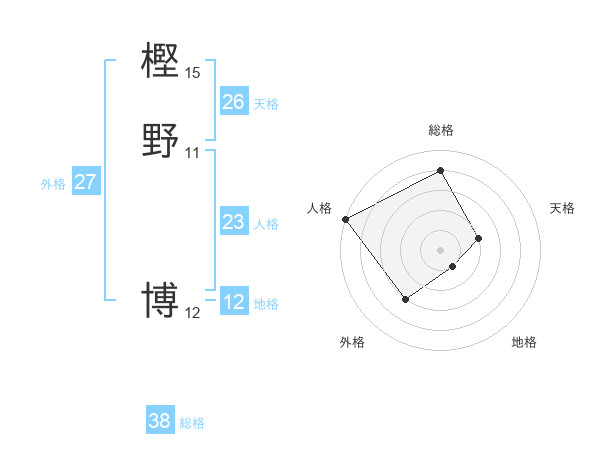 樫野 博さんの総格は38画の4点!