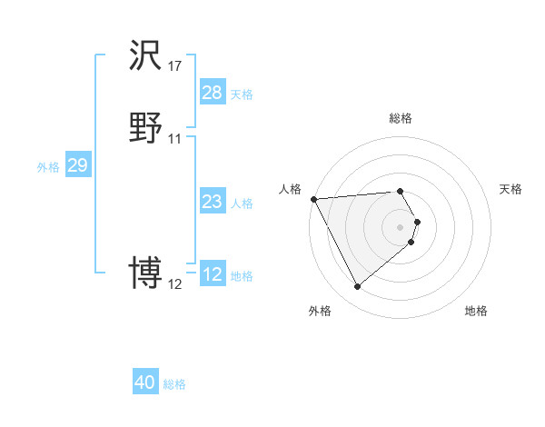 沢野 博さんの人格は23画の5点!