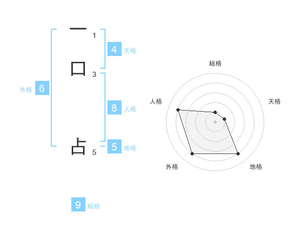 一口 占さんの地格は5画の4点!