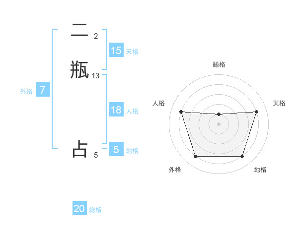 二瓶 占さんの天格は15画の4点!