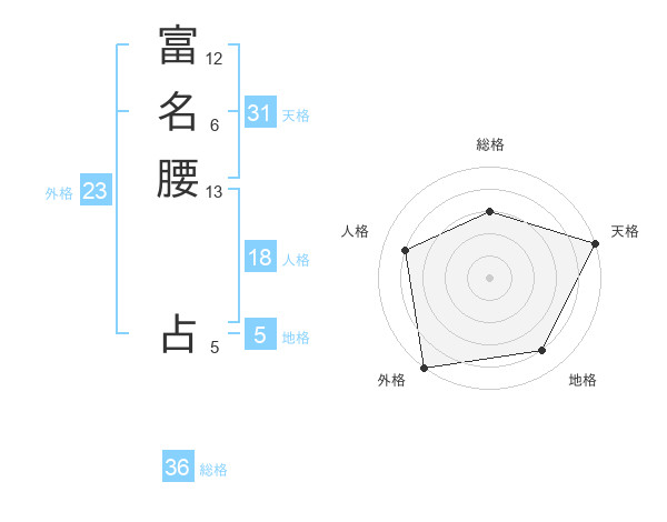 富名腰 占さんの外格は23画の5点!