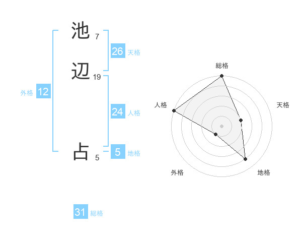 池辺 占さんの総格は31画の5点!