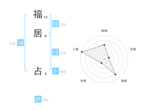 福居 占さんの天格は22画の1点!