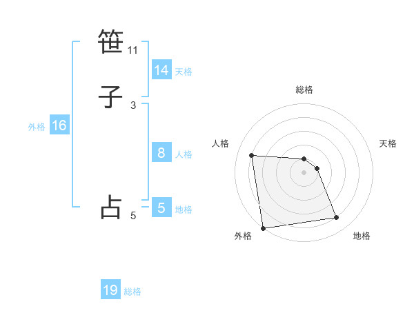 笹子 占さんの外格は16画の5点!