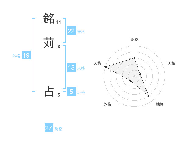 銘苅 占さんの外格は19画の1点!