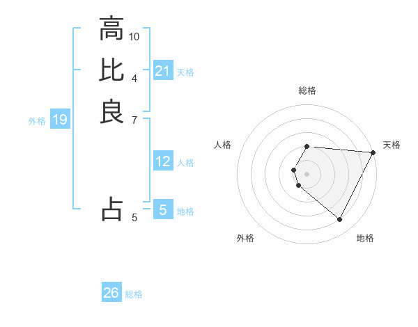 高比良 占さんの天格は21画の5点!