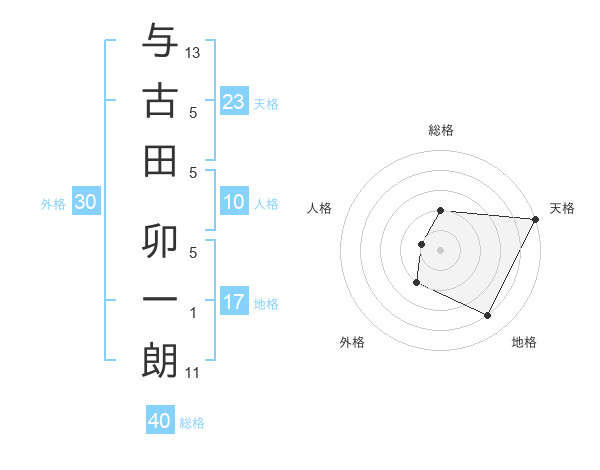 与古田 卯一朗さんの天格は23画の5点!