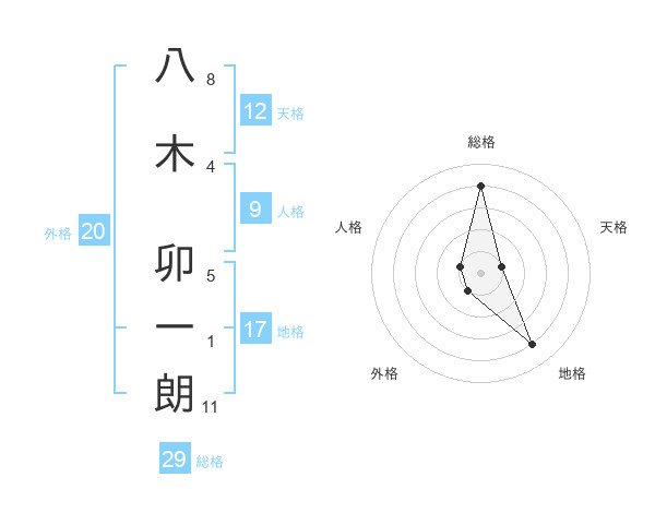 八木 卯一朗さんの総格は29画の4点!