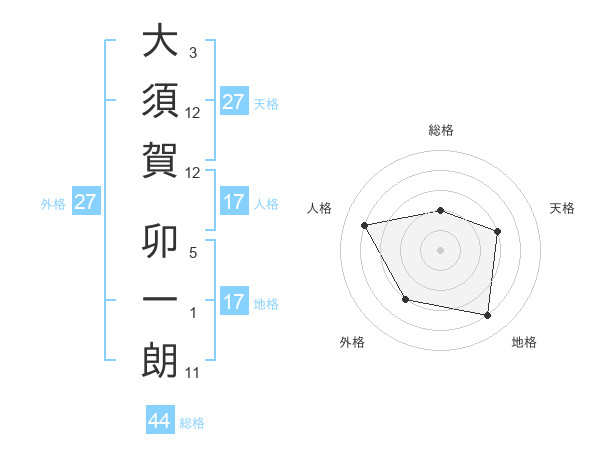 大須賀 卯一朗さんを姓名の画数から五運を鑑定
