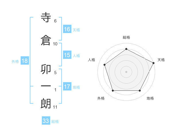 寺倉 卯一朗さんの総格は33画の4点!