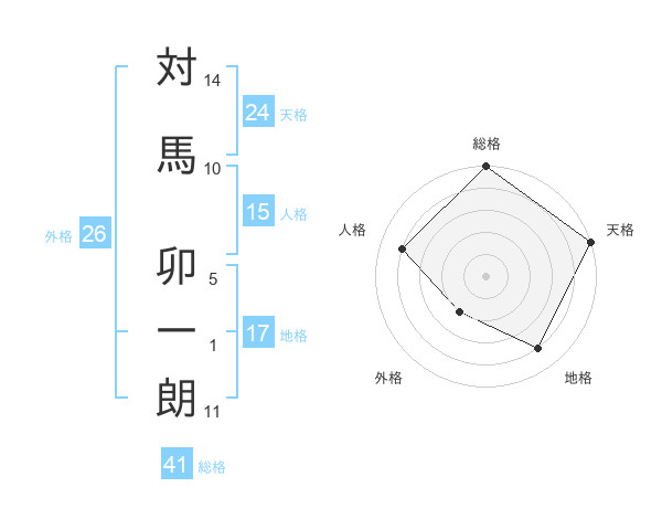 対馬 卯一朗さんの天格は24画の5点!