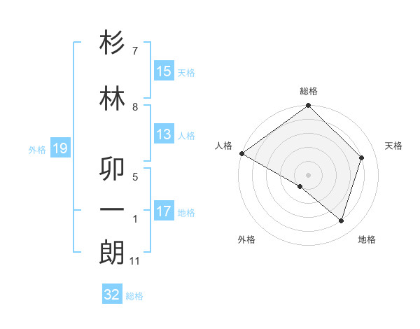 杉林 卯一朗さんの総格は32画の5点!