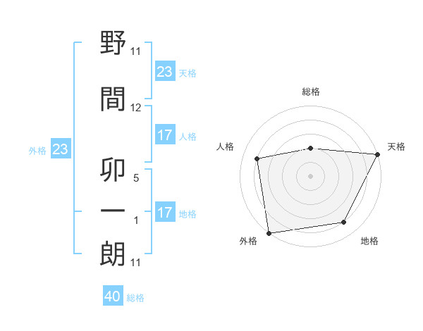 野間 卯一朗さんを姓名の画数から五運を鑑定