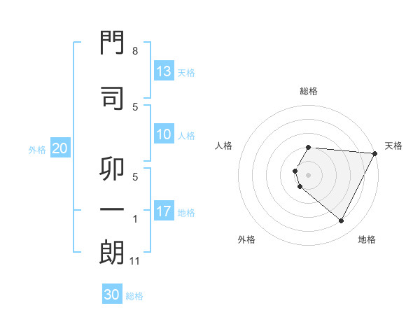門司 卯一朗さんを姓名の画数から五運を鑑定