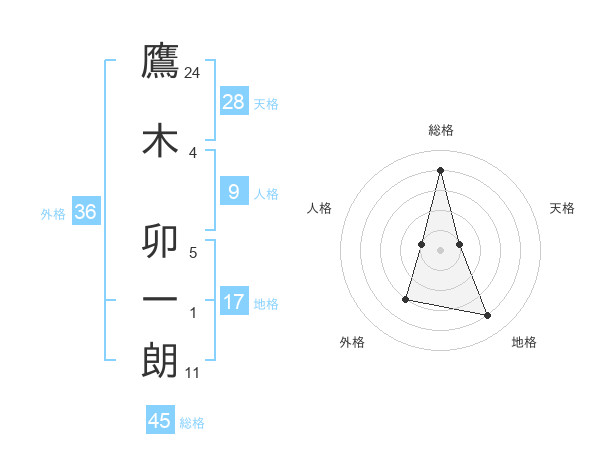 鷹木 卯一朗さんの総格は45画の4点!