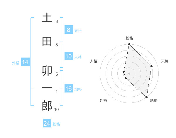 土田 卯一郎さんの総格は24画の5点!