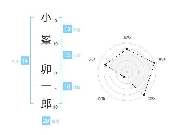 小峯 卯一郎さんの天格は13画の5点!