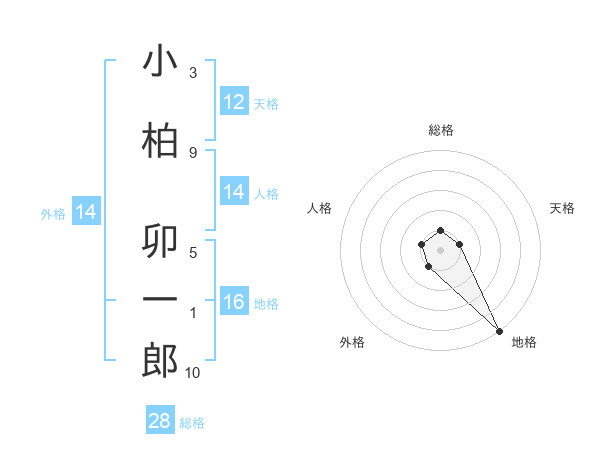 小柏 卯一郎さんの外格は14画の1点!
