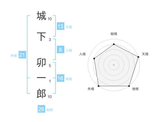 城下 卯一郎さんを姓名の画数から五運を鑑定