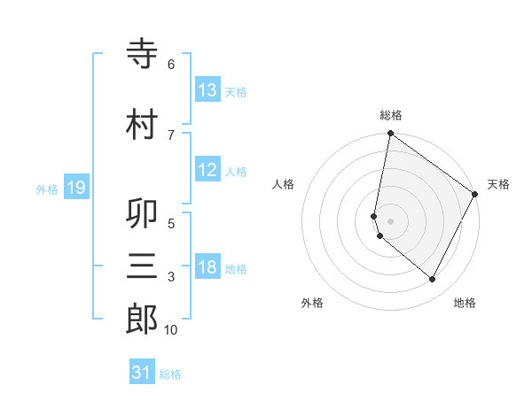 寺村 卯三郎さんの天格は13画の5点!
