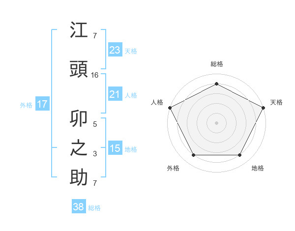 江頭 卯之助さんの天格は23画の5点!
