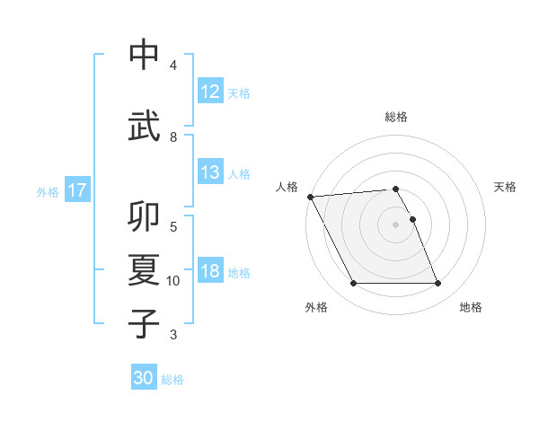中武 卯夏子さんを姓名の画数から五運を鑑定