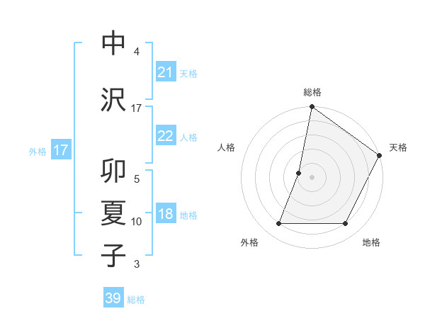 中沢 卯夏子さんを姓名の画数から五運を鑑定