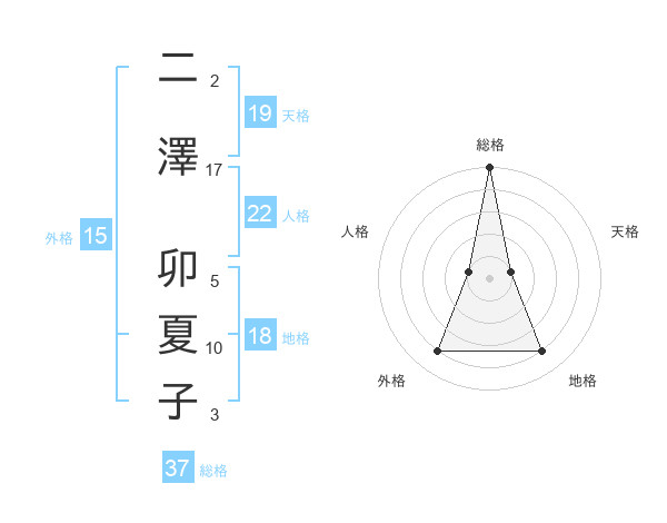 二澤 卯夏子さんを姓名の画数から五運を鑑定